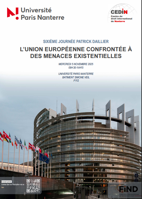 Chaque année, le CEDIN rend hommage au Professeur Patrick Daillier en organisant une journée d’étude consacrée à l’actualité du droit européen, abordée du point de vue du droit international. Ces journées sont préparées par des doctorants du CEDIN sous la supervision d’enseignants-chercheurs du Centre.