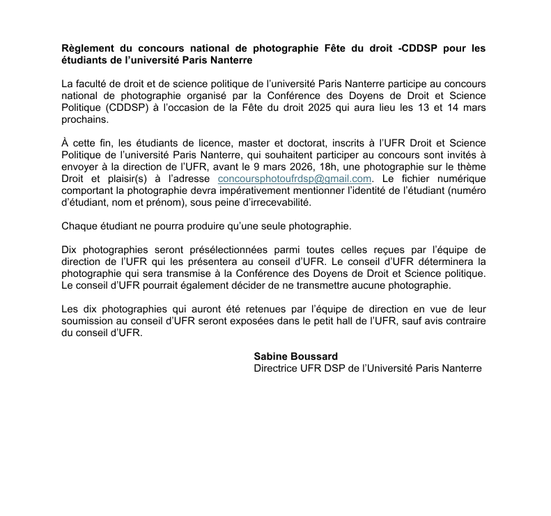 Politique de l’université Paris Nanterre, qui souhaitent participer au concours sont invités à