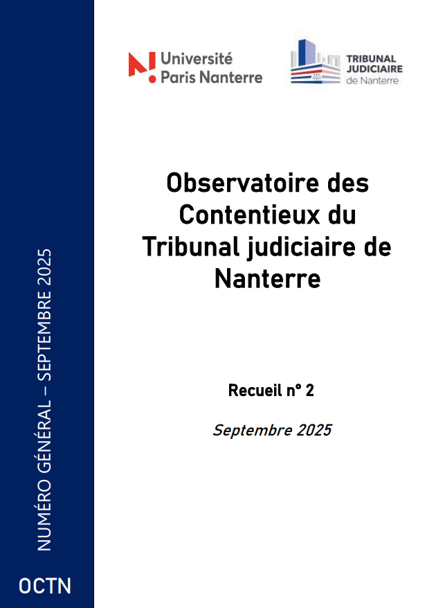 M. Sylvain Jobert et Mme Sauphanor-Brouillaud ont le plaisir, au nom de l'UFR DSP, de vous présenter le nouveau recueil général de l'OCTN de septembre 2025, rédigé dans le cadre du partenariat scientifique avec le Tribunal judiciaire de Nanterre. Vous trouverez également sur cette page le recueil général de mai 2024, ainsi que l'édition spéciale de janvier 2025.