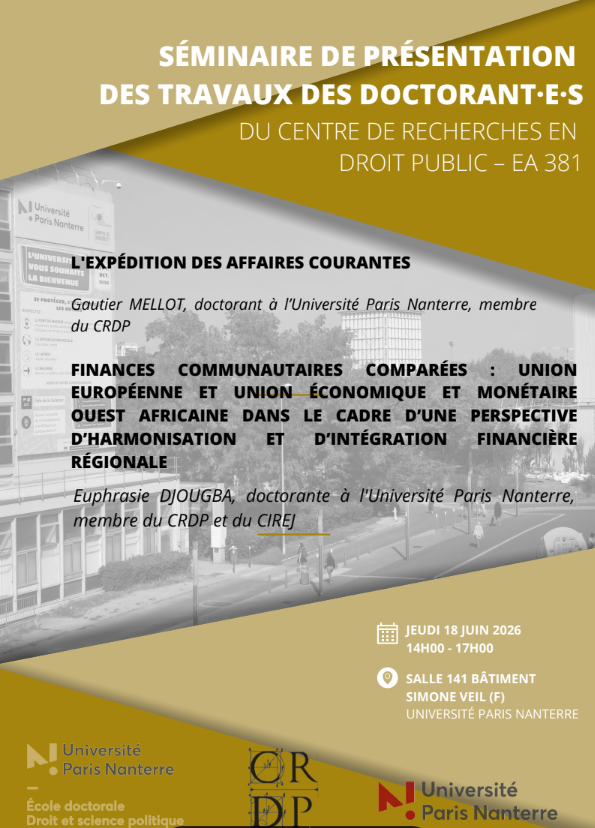 Le prochain séminaire dédié aux travaux des doctorants se déroulera le jeudi 18 juin 2026, de 14h à 17h, en salle 141.