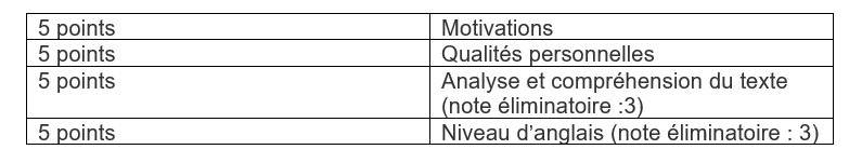 2/ PHRASE D’ADMISSIBILITÉ Un entretien pour les candidats présélectionnés. Seuls les 150 meilleurs candidats seront convoqués à un entretien préalable qui sera déterminant pour leur admission. Tableau